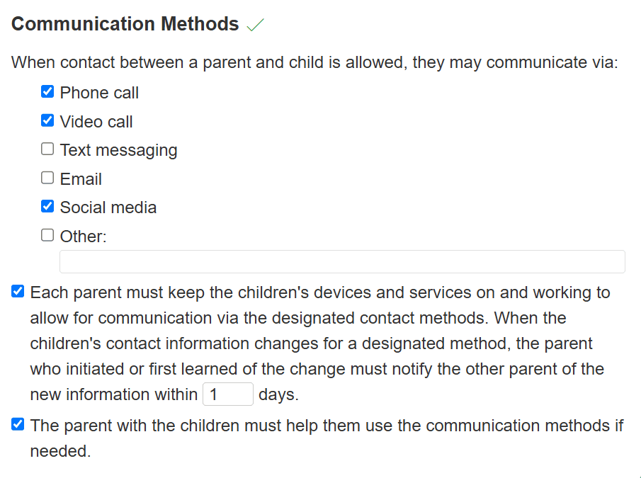 It's often tough to pin down what to include. Custody X Change makes it easy to explain how you will handle virtual visitation.