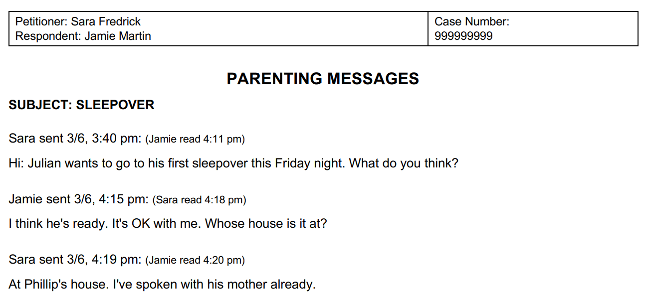 You can also exchange messages with the other parent through the app, so you have a printable record of what was said.